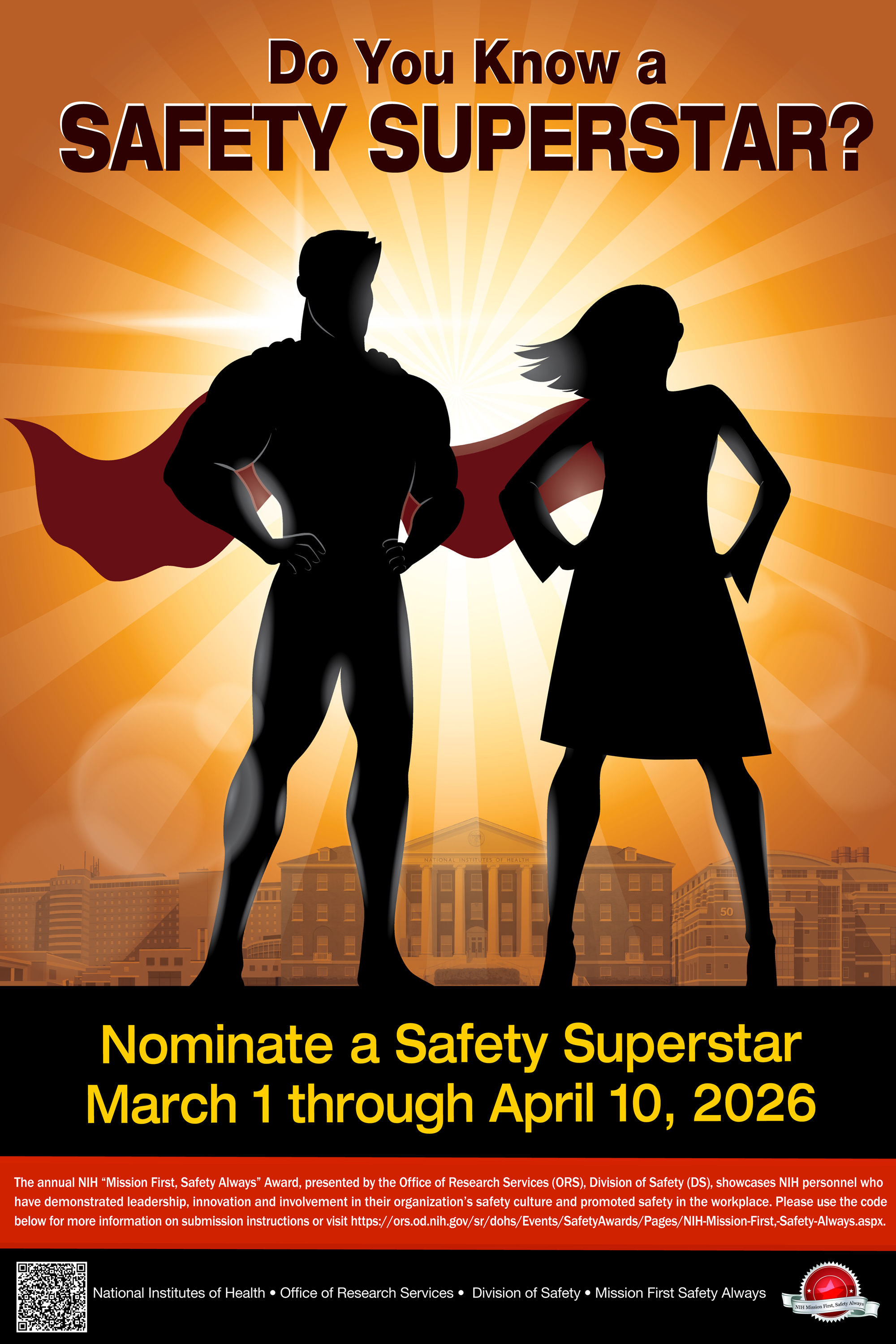 Nominate a superstar at: https://ors.od.nih.gov/sr/dohs/Events/SafetyAwards/Pages/NIH-Mission-First,- Safety-Always.aspx